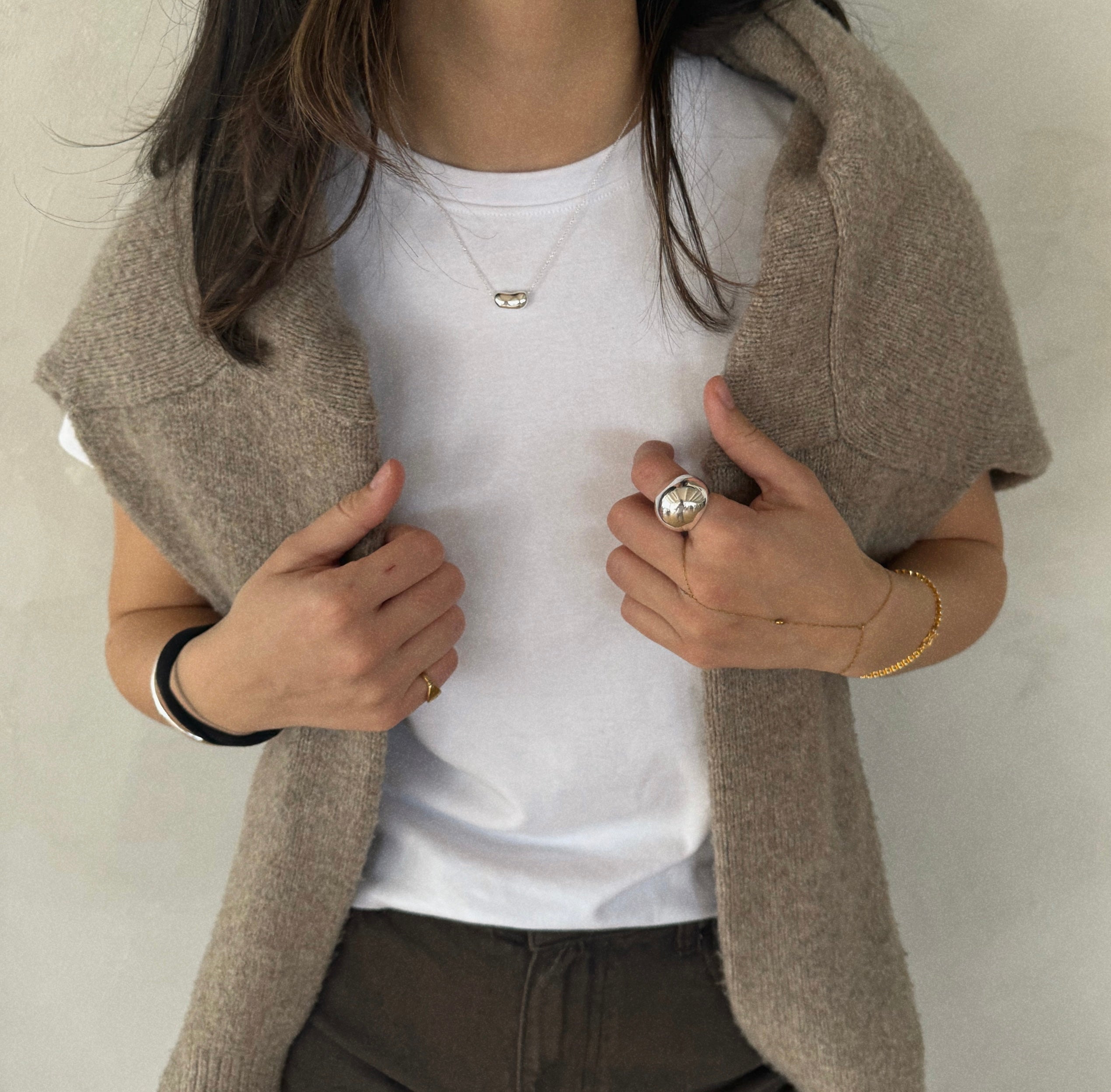 A classic Joiana bean necklace, tiny enough for everyday or to add a touch of elegance to any look.