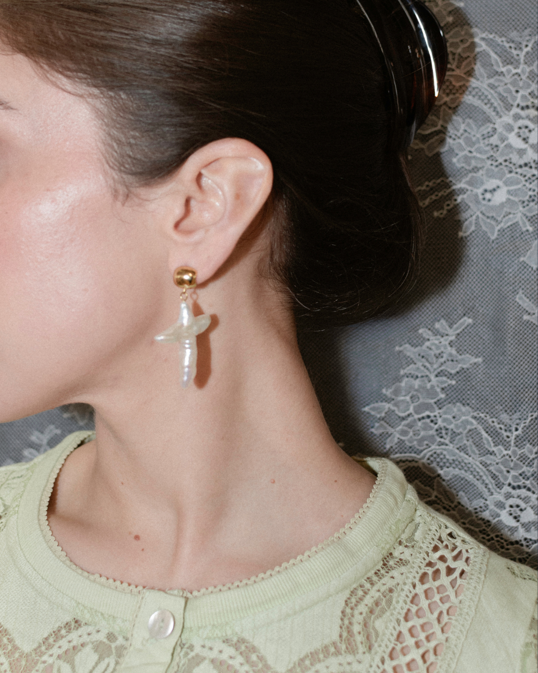 The new edition of our Joiana classic, the Pearl Cross Earrings, meet Cruz. Two stud options a hoop and a huggie, take your pick.
