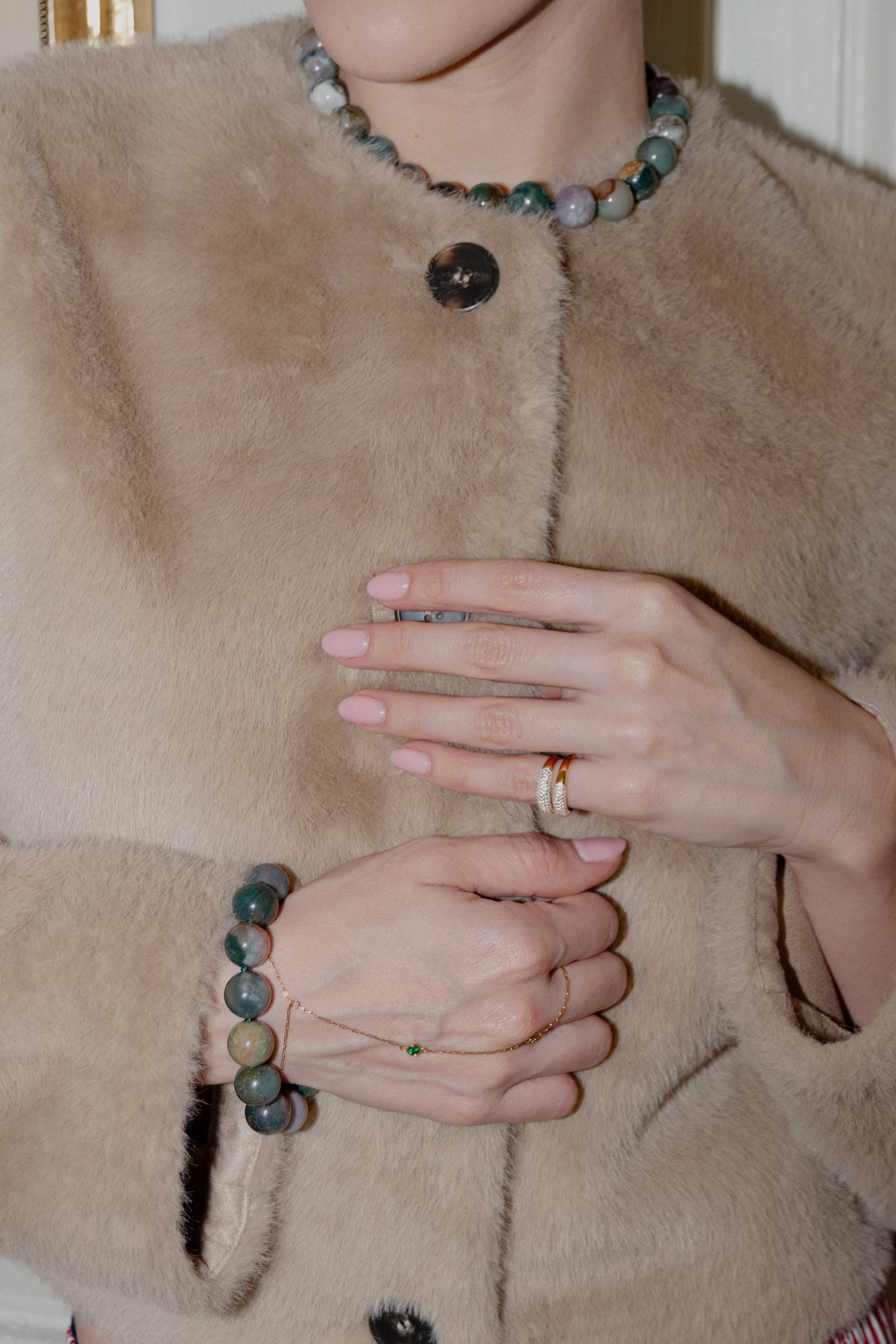 A chunky bracelet made with 14mm beads. Soft, cozy, and finished with our 18k gold plated stainless steel hardware.