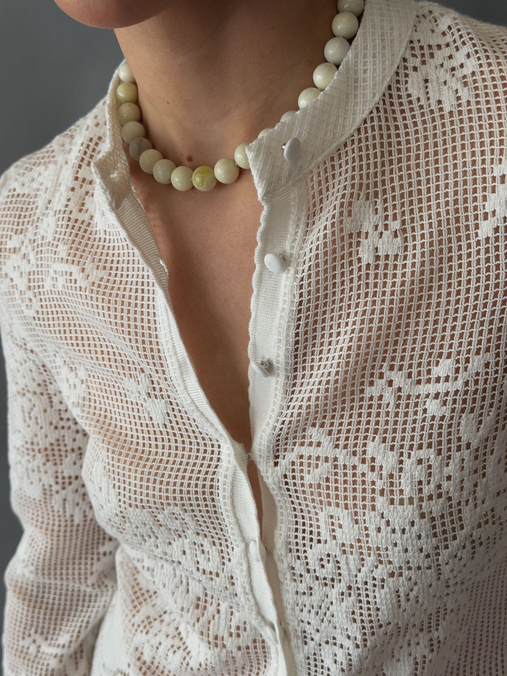 A sculptural necklace made with 12mm beads. Easy to layer or wear on its own, finished with 18k gold plated stainless steel hardware.