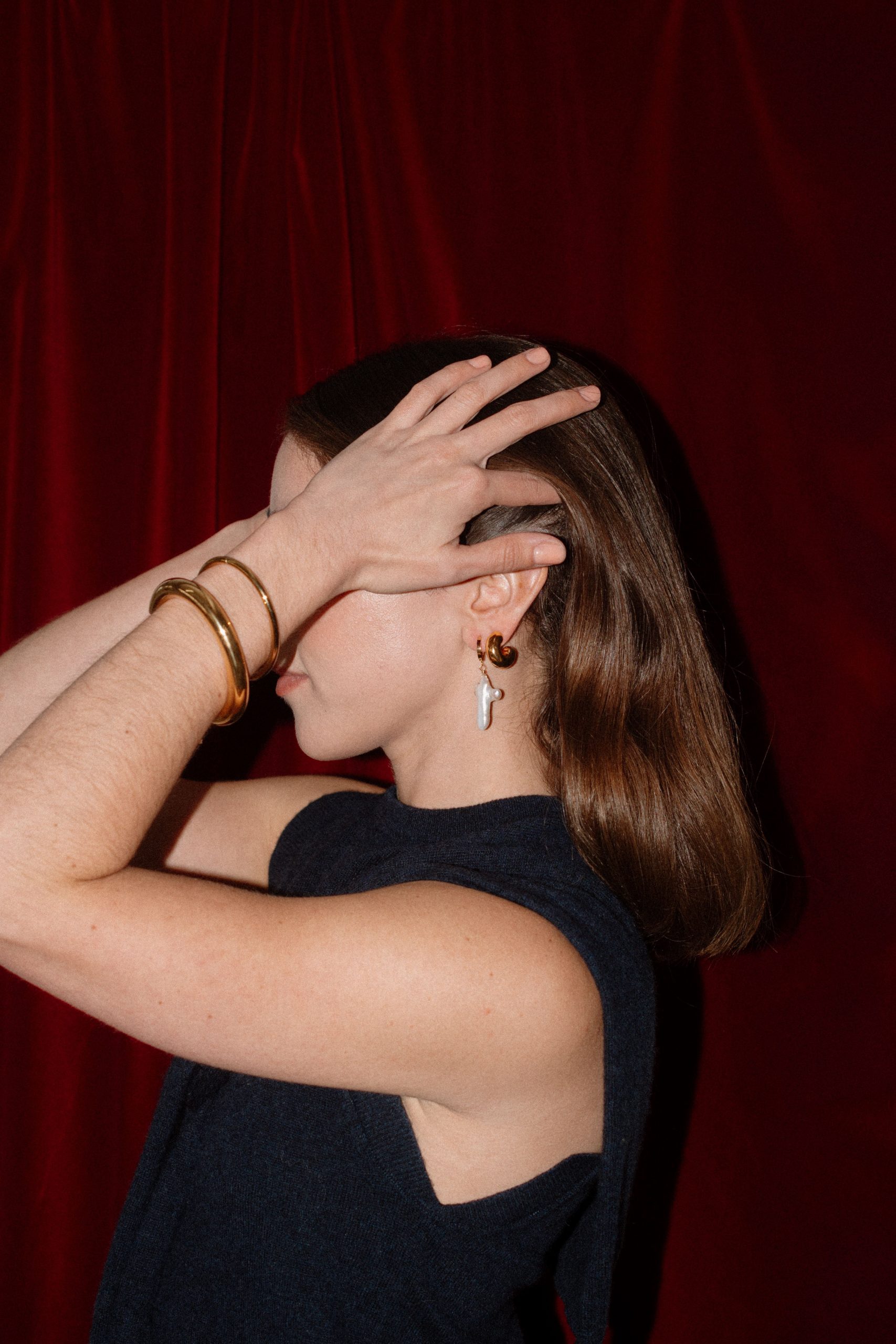 18k gold plated or Sterling Silver plated with a freshwater pearl pendant dangle.