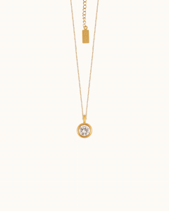 Stainless steel with 18k gold plating, cubic zirconia.